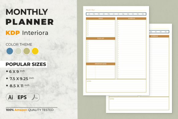 Planner interior templates help you publish faster with a repeatable structure: cover pages → monthly/weekly planning → trackers → notes. Use this page to choose the right KDP planner interior style (weekly, monthly, daily, undated), keep it print-ready, and avoid common formatting mistakes.